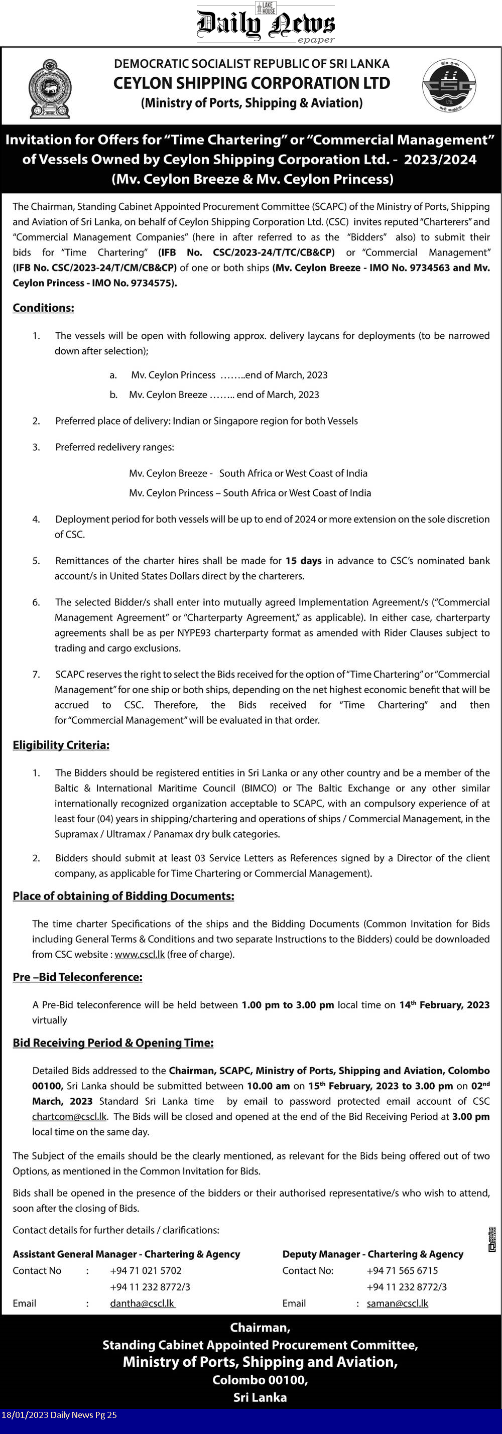 Contract No(s): CES/FPIOGIPT 16608 (HM) - Ministry of Ports, Shipping & Aviation